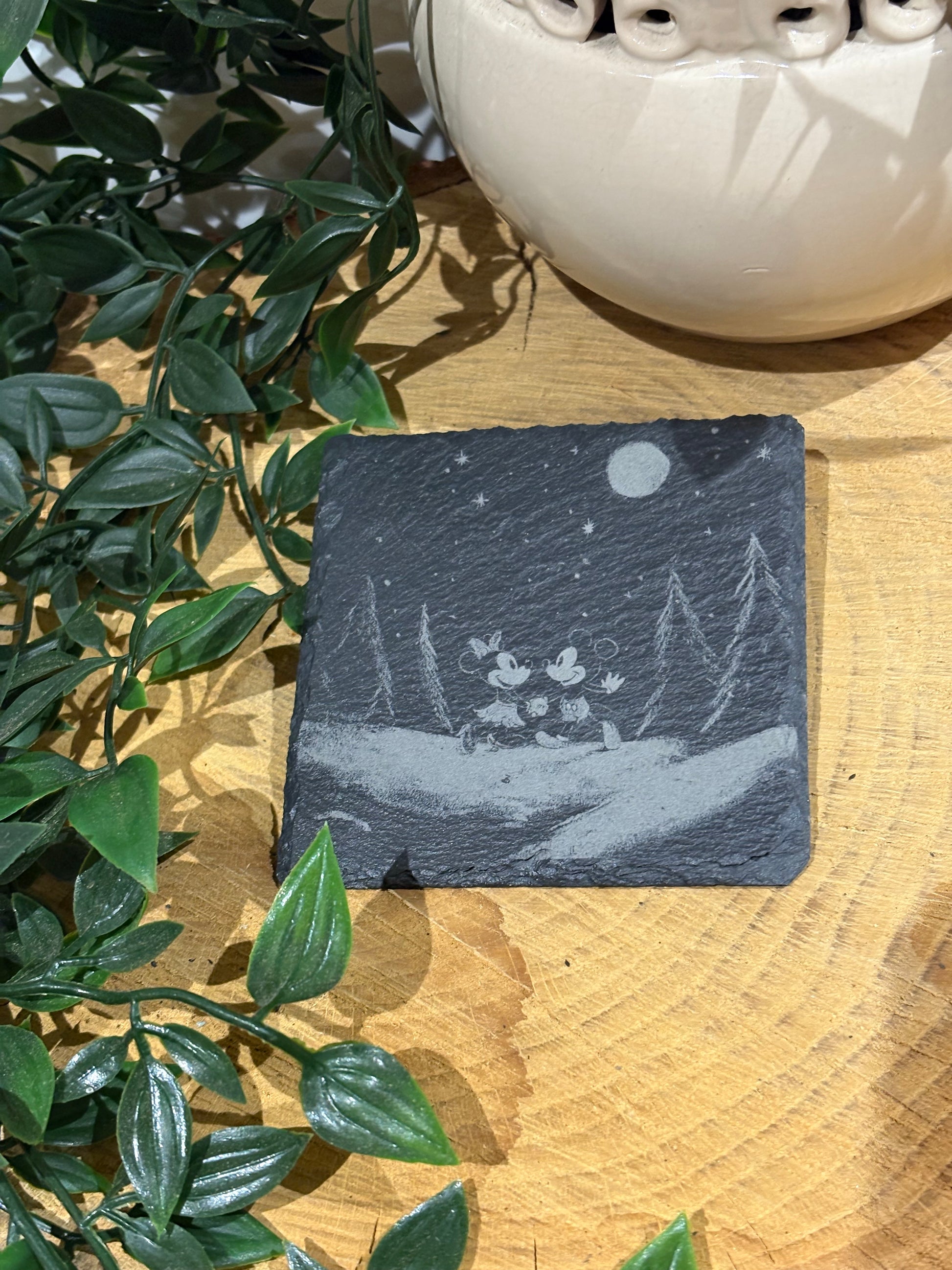 Protect your surfaces in festive style with these slate laser-engraved mouse Christmas coasters. Each piece features precision-cut designs that celebrate the season, combining durability with decorative appeal. The natural slate construction provides excellent heat and moisture resistance, making them ideal for hot beverages and cold drinks alike. Perfect for holiday entertaining or as a thoughtful gift for mouse enthusiasts, these coasters blend practical functionality with seasonal charm. The laser engraving ensures crisp, long-lasting detail that won't fade with regular use.