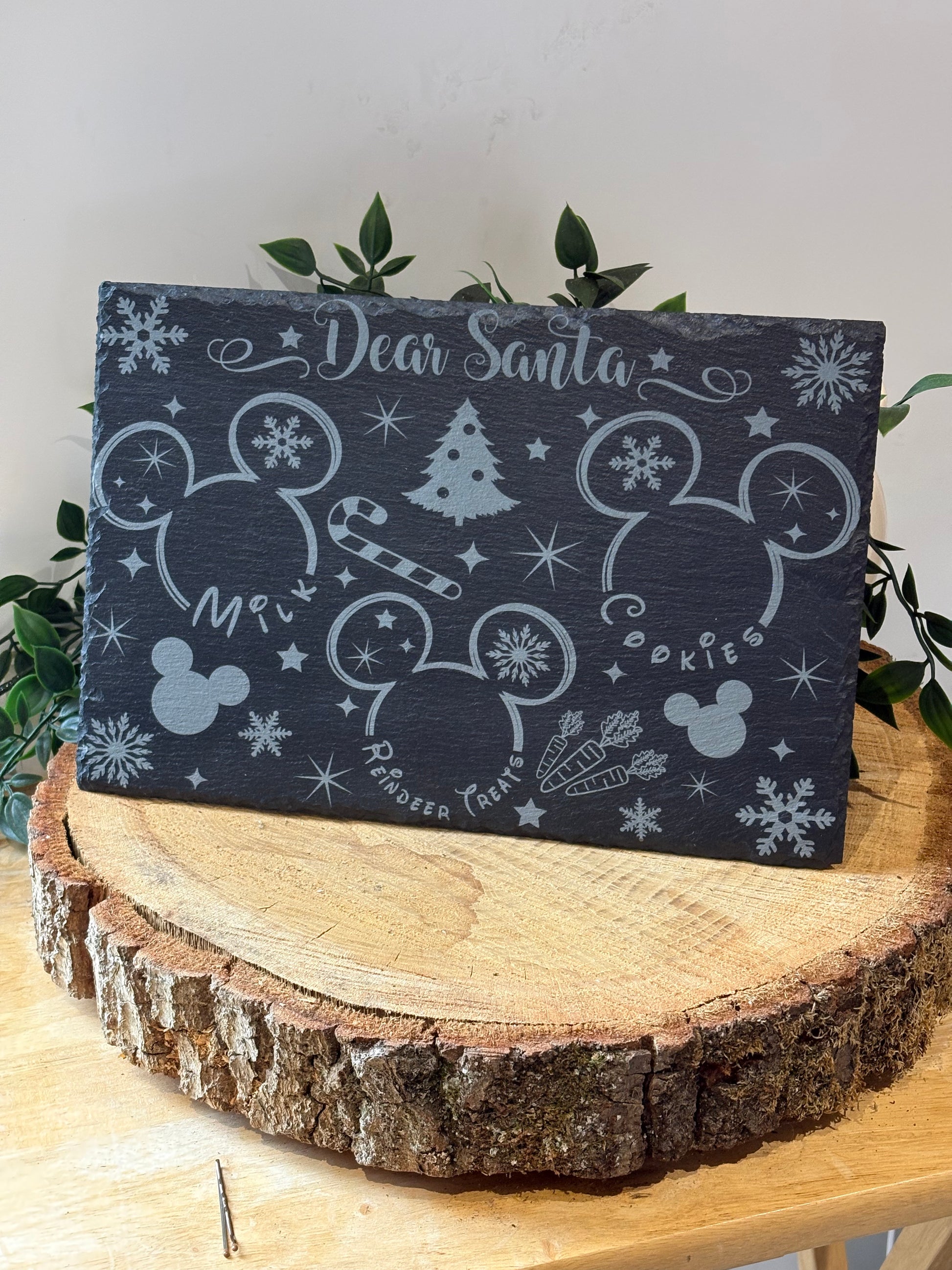 Crafted from high-quality slate, this Santa-themed cookie tray combines durability with festive charm. Expertly engraved, the design adds a sophisticated seasonal touch to your holiday gatherings. The natural texture of the slate ensures an elegant presentation while providing a sturdy surface for serving cookies and treats. Perfect for adding a refined accent to your festive décor or gifting to loved ones who appreciate artisanal craftsmanship.